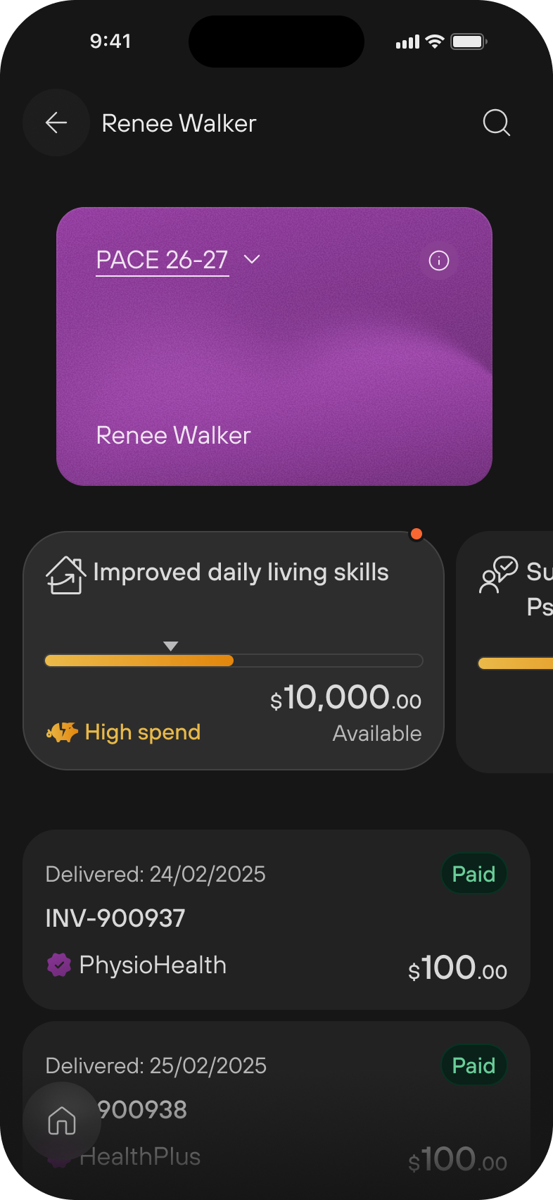 You can manage and track your NDIS budget in the app: