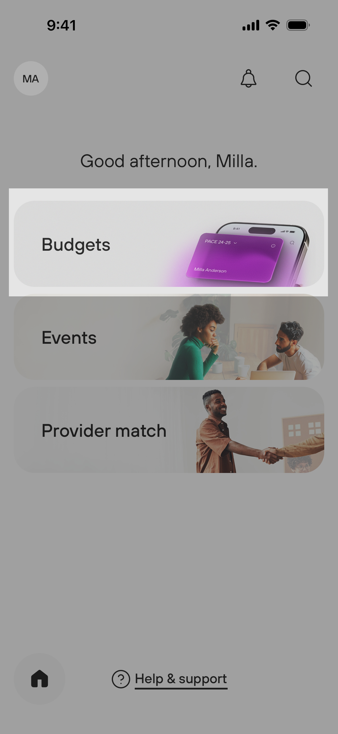 This guide is for participants, carers and Support Coordinators who want to view an individual's budget on the mobile app.